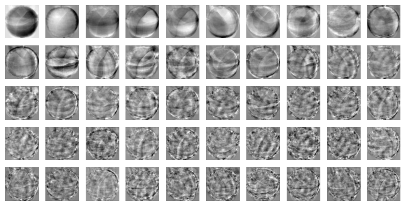 # -> 50개의 주성분, 각 주성분들은 원소를 10000개씩 갖고 있음