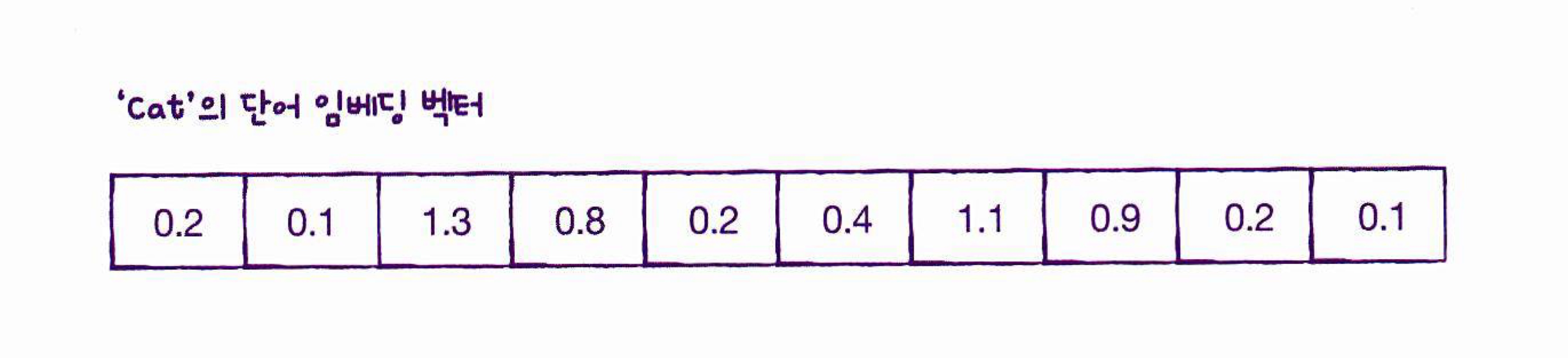 : 각 단어를 고정된 크기의 실수 벡터로 바꿔줌
