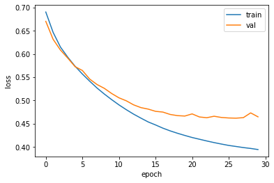 plt.legend(['train', 'val'])