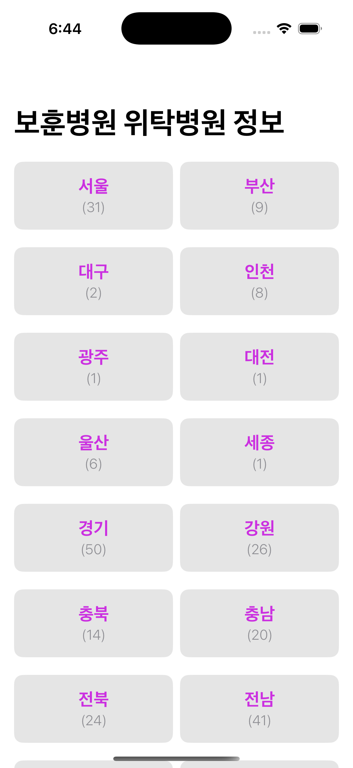 병원 데이터를 지역 별로 그룹화합니다. 서버에서 받은 병원 array를 region_small 값을 기준으로 Dictionary(goruping:)을 사용해 지역별로 그룹화합니다.