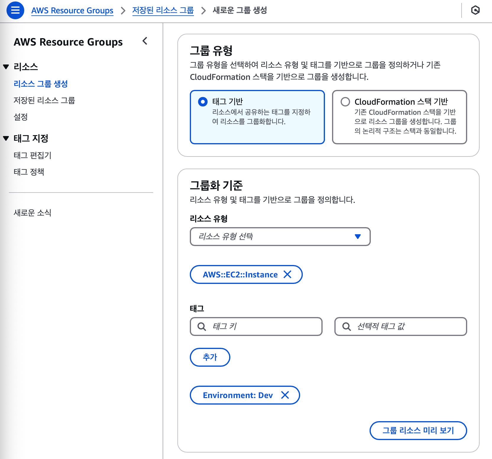 AWS Resource Groups는 태그를 활용해 논리적인 리소스 그룹을 생성하고 관리할 수 있는 서비스입니다.