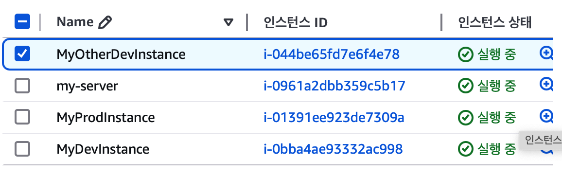 my-server는 기존 저의 인스턴스이고 3가지가 이름이 바뀌였습니다.