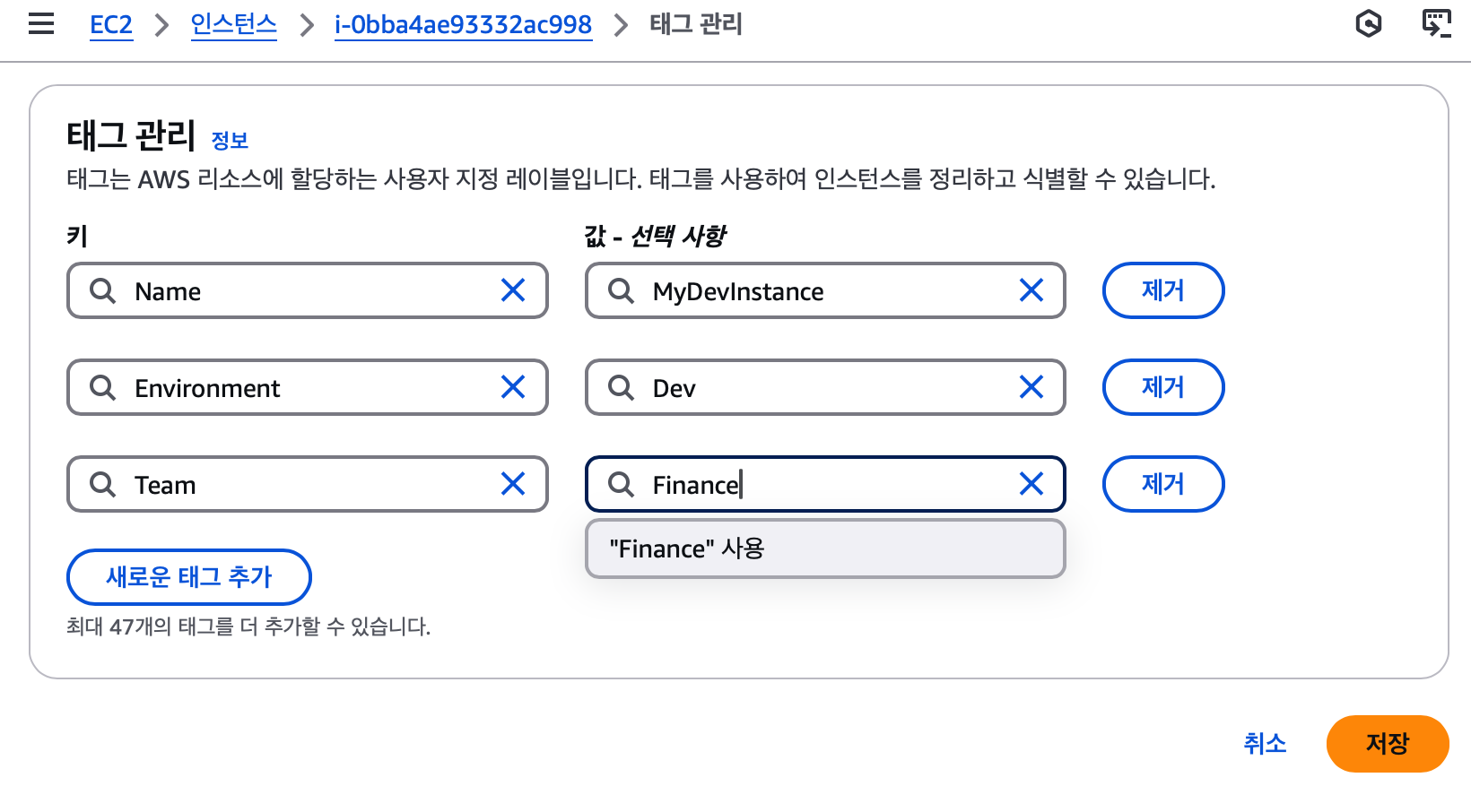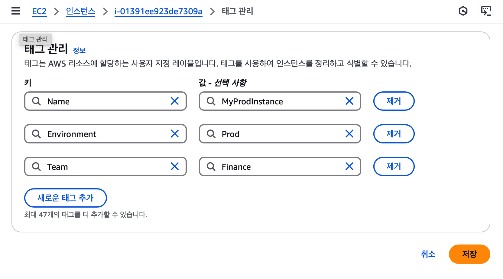저는 3개의 인스턴스를 가지고 실습을 진행했지만, 실제 기업에서는 수십 개, 수백 개의 리소스를 사용하다보면, 어떤 리소스가 어떤 용도인지 혼란스러울 수 있습니다. 태그를 사용하면 각 리소스의 역할과 속성으 명확히 정의할 수 있습니다.