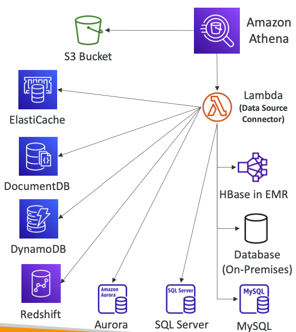 Amazon Athena Federated Query는 다양한 데이터 소스에 걸쳐 단일 SQL 쿼리를 실행할 수 있는 기능입니다. 이를 통해 관계형, 비관계형, 객체 저장소, 그리고 사용자 정의 데이터 소스(AWS 또는 온프레미스)에 있는 데이터를 통합적으로 분석할 수 있습니다.
