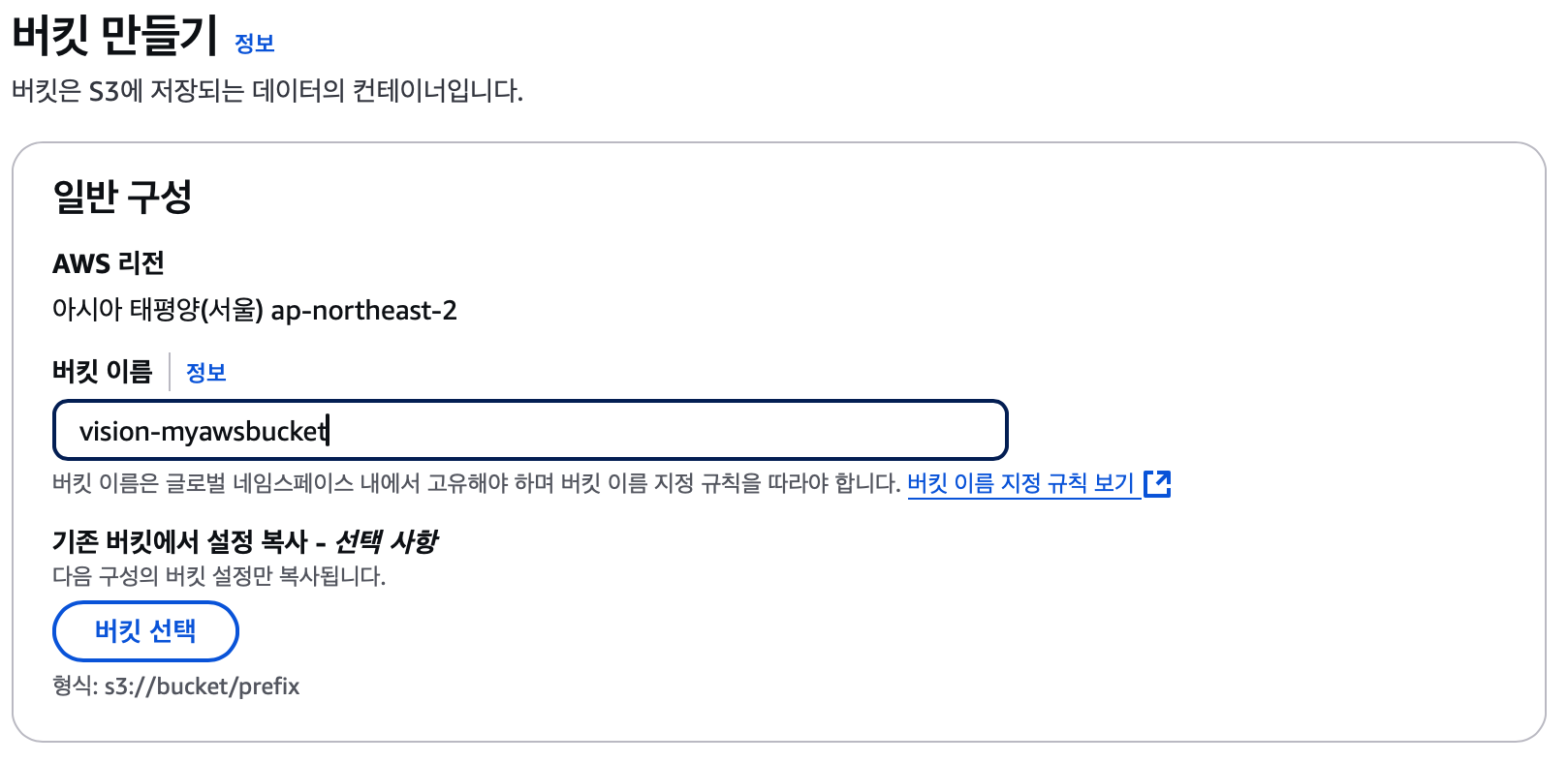 AWS 콘솔 -> S3 -> 버킷 생성