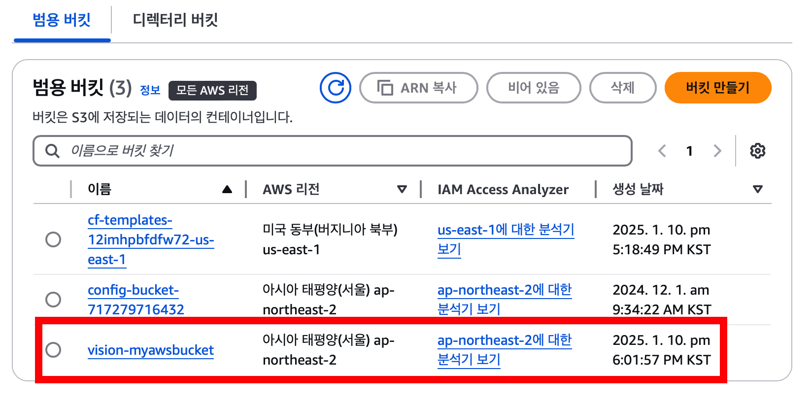 버킷생성 완료
