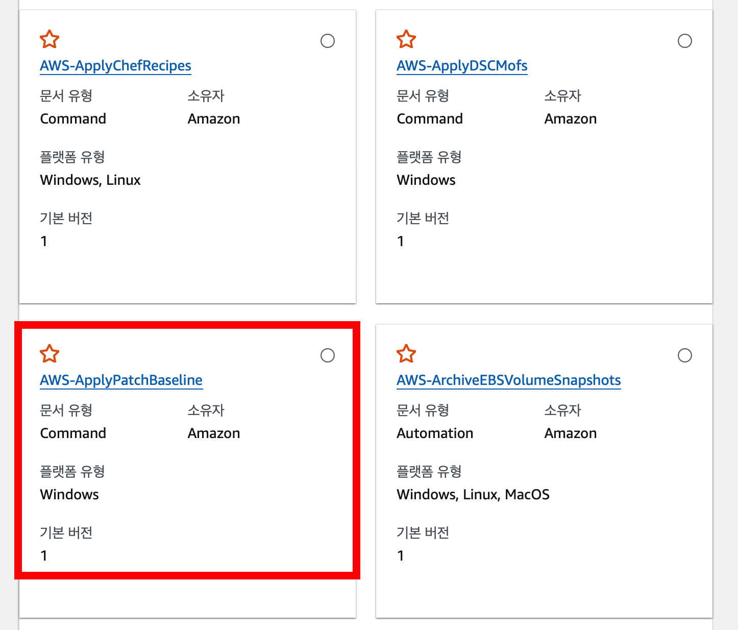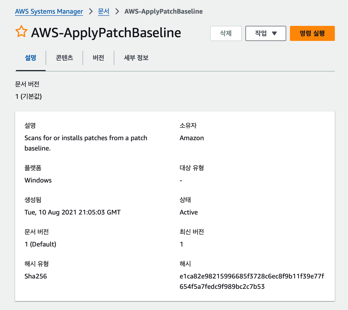 설명을 보면 패치 베이스라인에 패치를 스캔하거나 설피하는 데 유용하다는 것을 알 수 있습니다.
