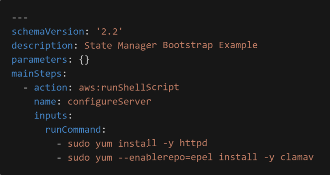 SSM Documents는 명령어나 스크립트를 실행하는 데 필요한 정의를 포함하는 JSON 또는 YAML 형식의 파일입니다. 이를 통해 다양한 자동화 작업을 수행할 수 있습니다.