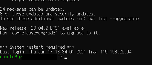 위와 같은 메시지가 뜨면 ubuntu를 입력해 연결할 수 있습니다.