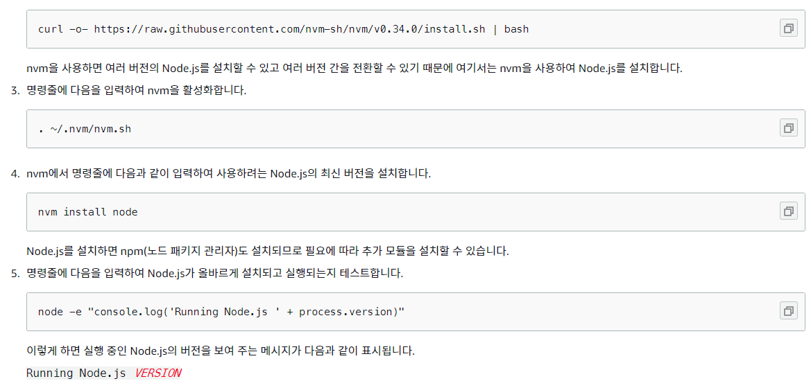 네 개의 명령어를 차례로 입력하면 npm 설치가 완료됩니다.