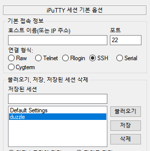 연결 > SSH > Auth에서 인증 개인키 파일에 변환한 .ppk 키파일을 업로드 하고 세션을 저장합니다.