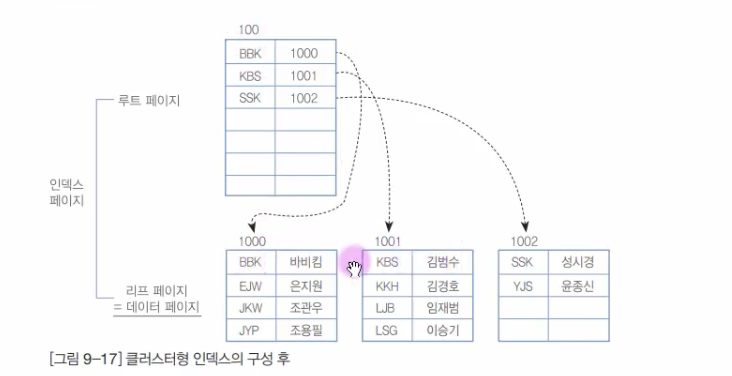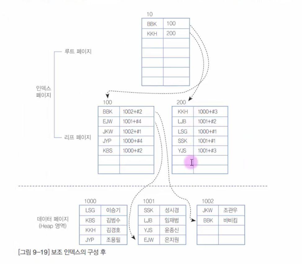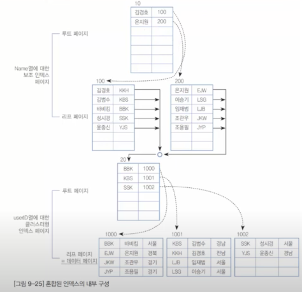 - 클러스터 인덱스와 세컨더리 인덱스의 혼합