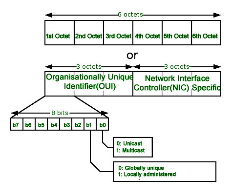 - 네트워크 인터페이스카드에 내장된 컴퓨터의 고유한 48비트 하드웨어 번호