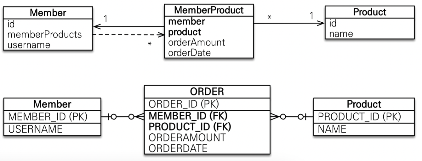 이때 ORDER 테이블의 기본키는 (member_id, product_id)로 설정할 수도 있고