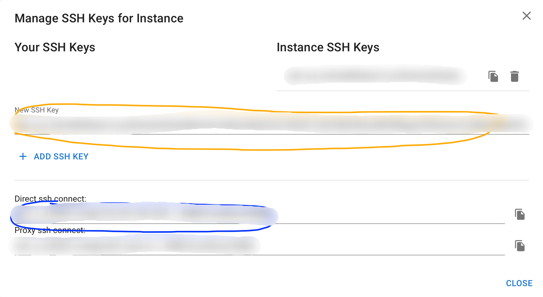 ‘Direct ssh connect’ 밑(파란부분)을 터미널에 입력하면 연결 완료!!