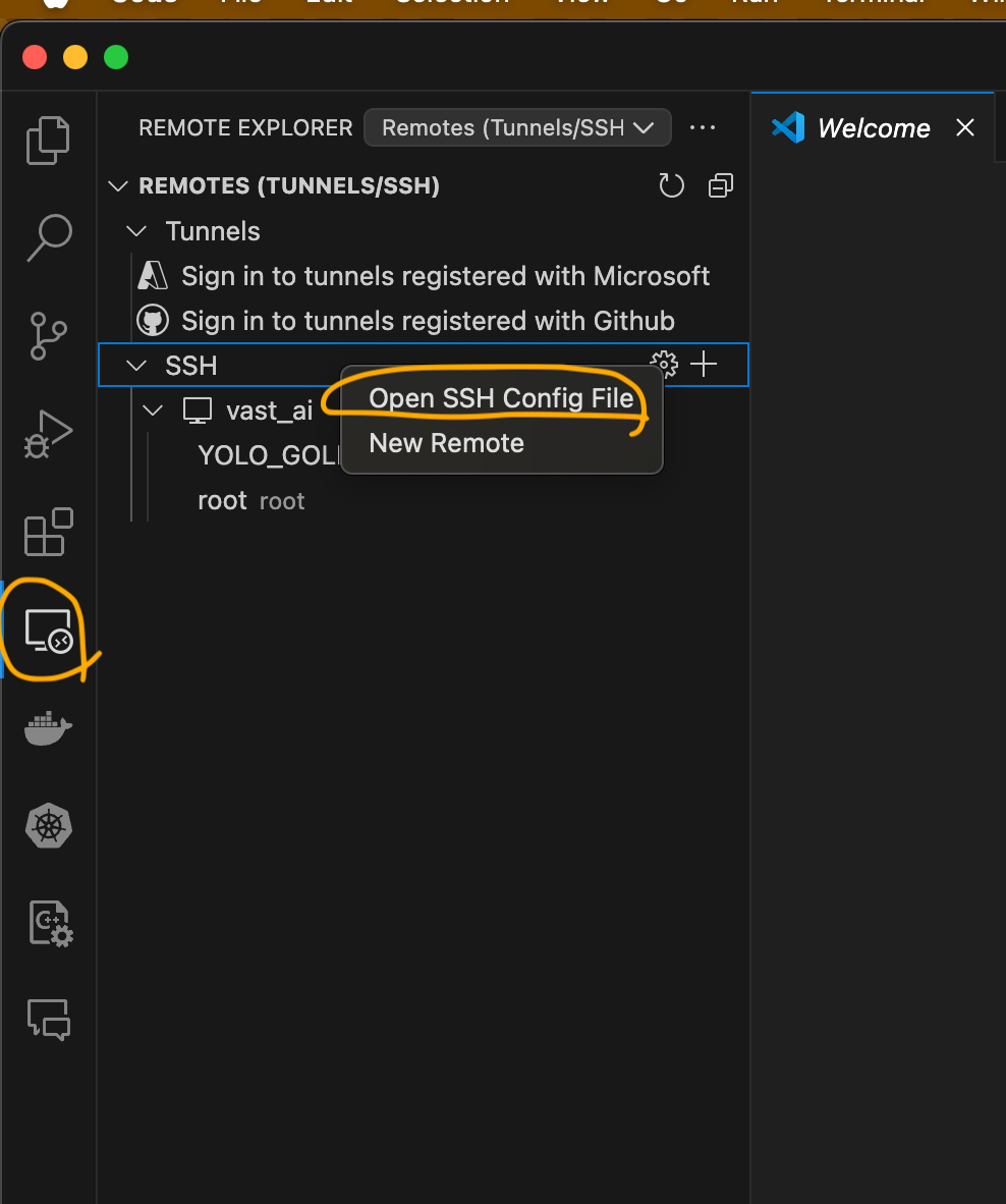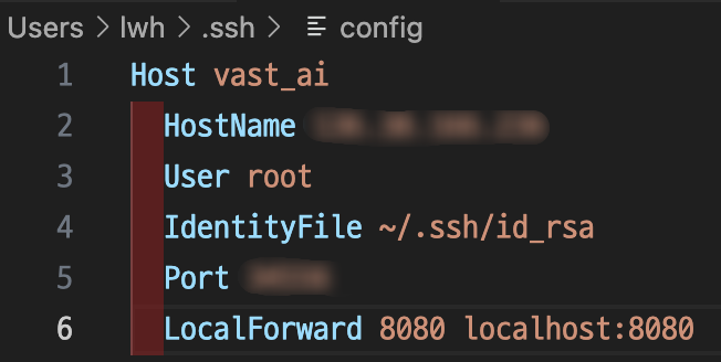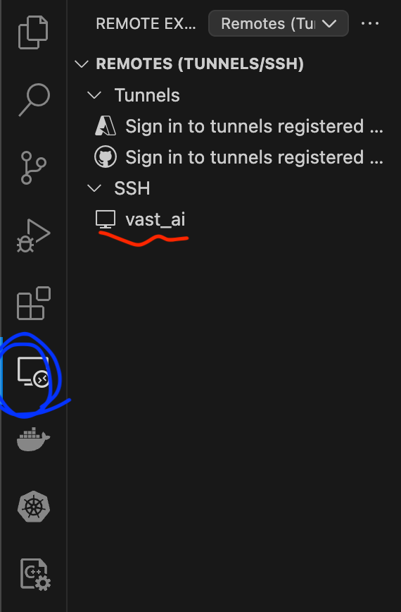 더 간편한 방법은 왼쪽 바에 파란색 부분 클릭하고 설정해준 호스트 이름인 'Vast_ai'을 클릭하면 바로 연결된다.