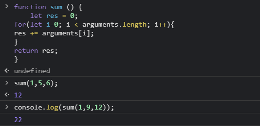 arguments 객체는 매개변수 갯수가 확정되지 않은 가변 인자 함수를 구현할 때 유용하게 사용된다.