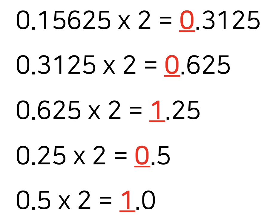 즉, 0.15625를 2진수로 나타내면 0.00101