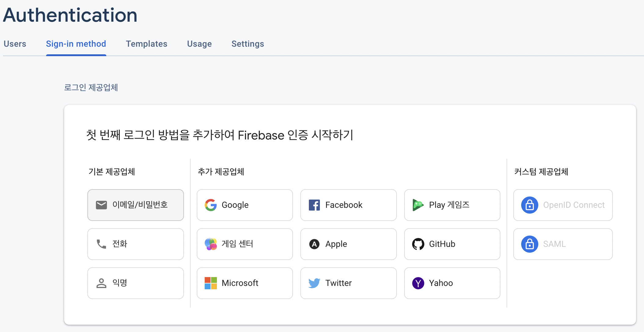 우리는 Sign-in method를 이메일/비밀번호로 설정하여 사용자의 이메일 주소, 비밀번호만으로 회원가입할 수 있도록 했다.