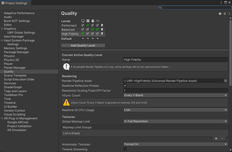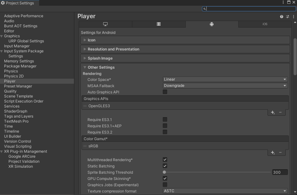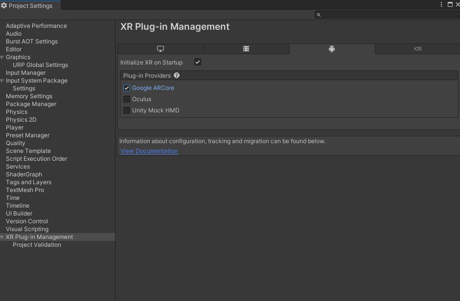 Project Settings -> XR Plug-in Management -> Android -> Google ARCore 체크