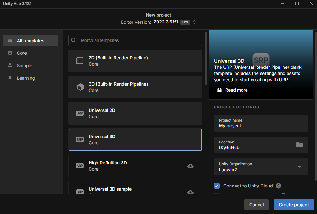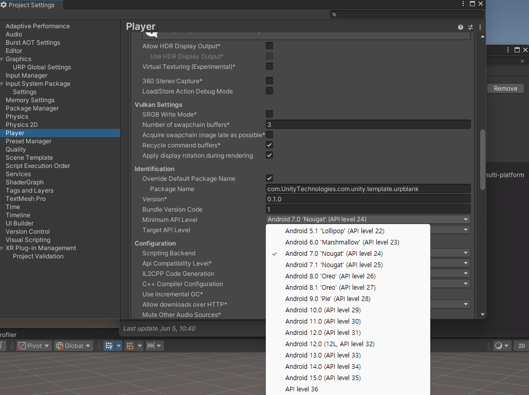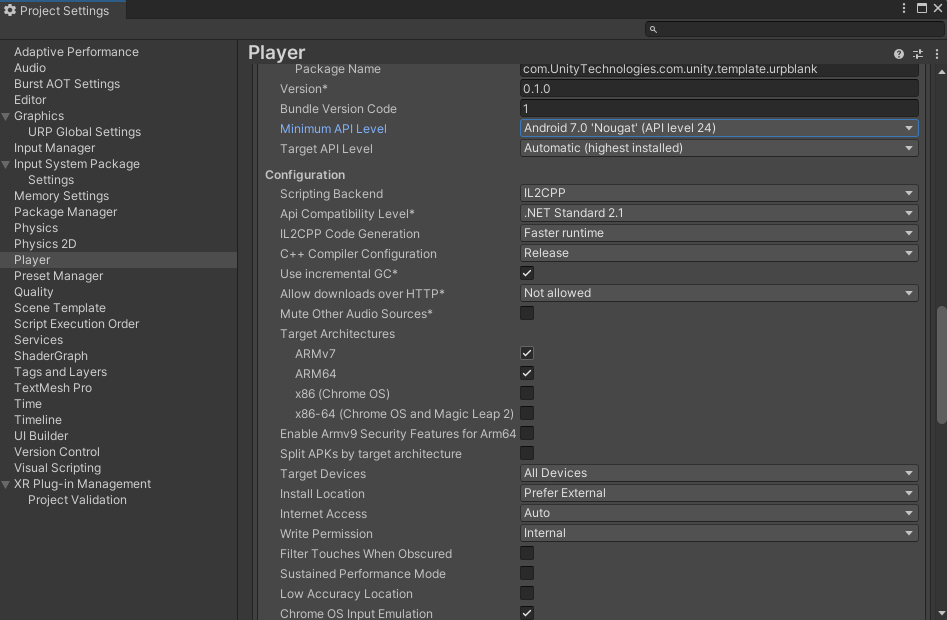 URP 3D로 프로젝트 생성AR mobile Template을 다운 받아서 실행해도 무관하다.