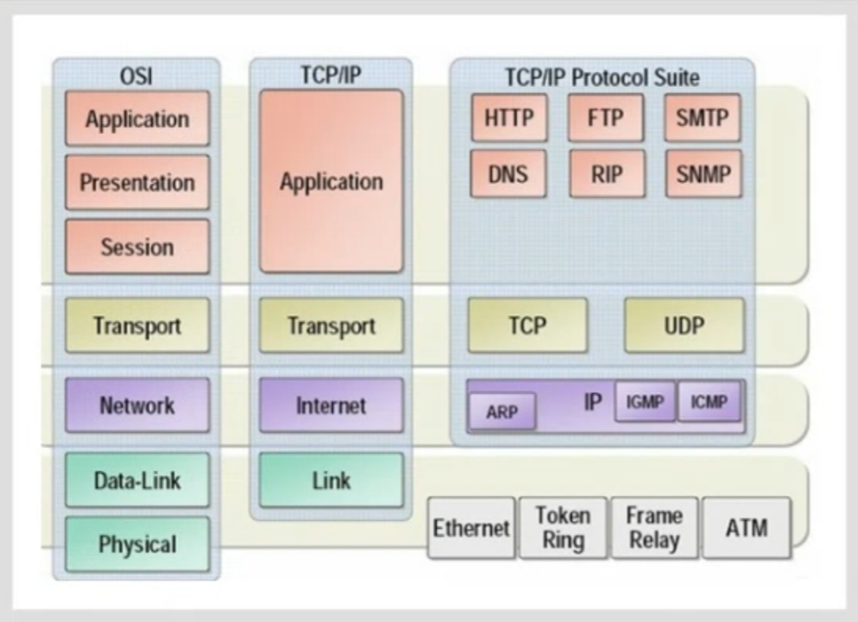 TCP/IP 4계층OSI 7계층 모델이 이론을 위한 모델이라면 TCP/IP 4 계층은 실제 네트워크 설계 및 구현에 많이 사용된다. 두 모델의 계층들이 서로 대응되며, 각 모델의 목적에 따라 사용할 수 있어야한다.