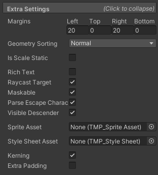 Extra Settings의 Margins에서 4방향의 여백을 개별적으로 설정하는 것 또한 가능하다.