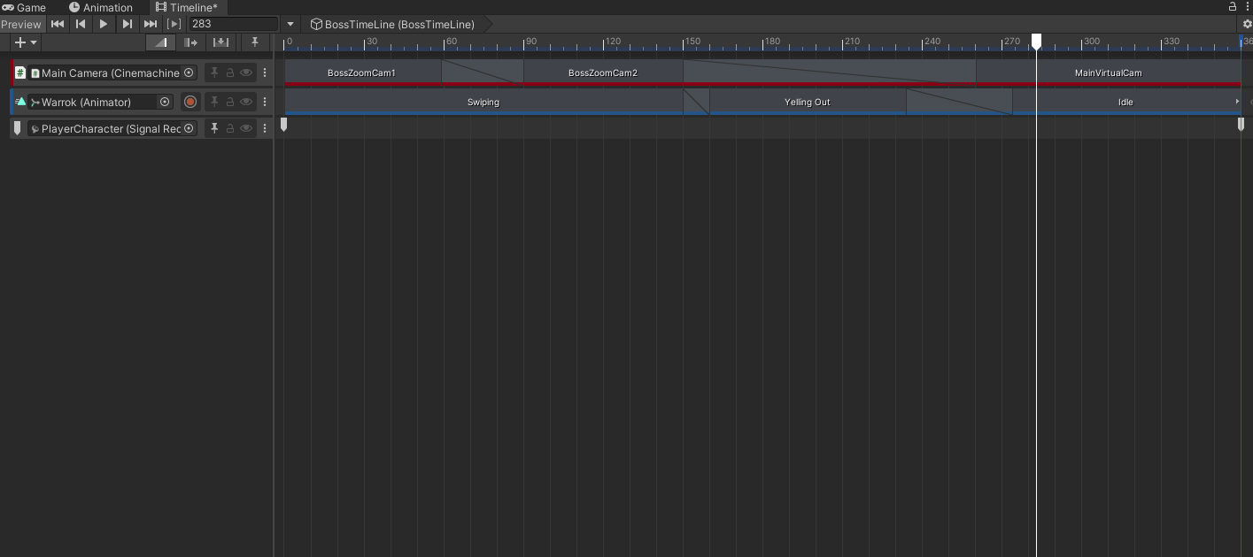 를 비활성화하도록 하여 플레이어가 컷씬 중에 이동할 수 없도록 설정하고, 타임라인 마지막에 생성한 시그널에는 다시 활성화하여 움직일 수 있도록 구현하는 것이 가능하다.