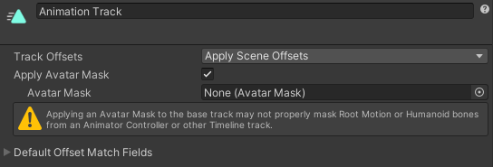 애니메이션 트랙은 특정 오브젝트의 애니메이션을 재생시키는 역할을 하는데, 중요한 것은 Track Offsets이다. 해당 옵션을 Apply Scene Offsets