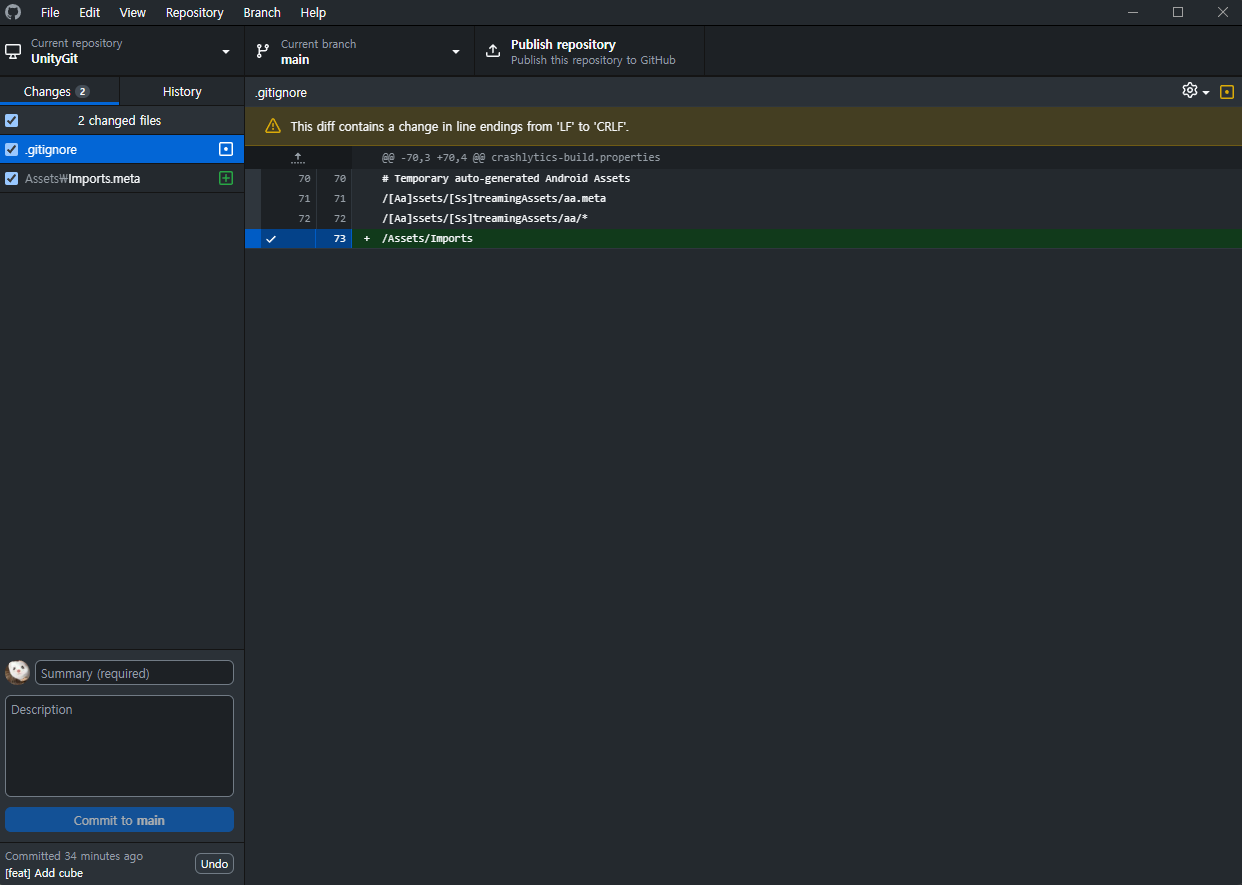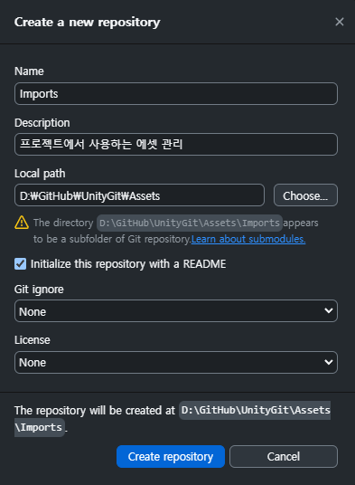 → Ignore folder(add to. gitignore) - /Assets/Imports 클릭