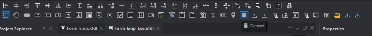 Dataset은 invisible object이기 때문에 Form 영역에선 보이진 않고 하단의 invisible object 에서 확인할 수 있음