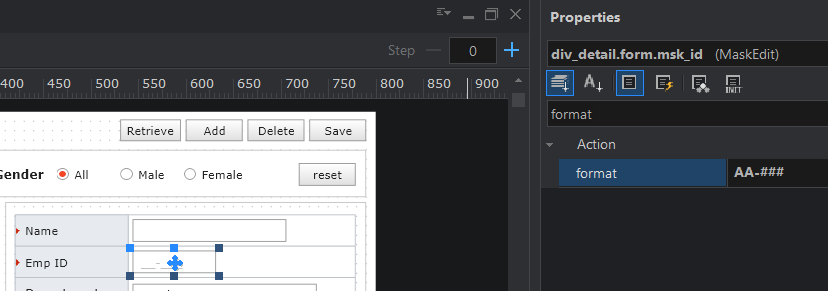 MaskEdit 는 속성의 type 과 format을 잘 확인해야 함.