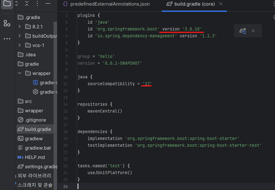 jdk8이나 jdk11을 사용하는 경우 스프링 부트 version을 3.0 하위 버전으로 설정하면 해결된다.