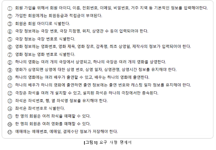 요구 사항 분석은 과제의 내용으로 주어졌기 때문에 요구 사항 분석 결과를 가지고 개념적 설계부터 시작하여 설계 진행 순서로 기술한다.