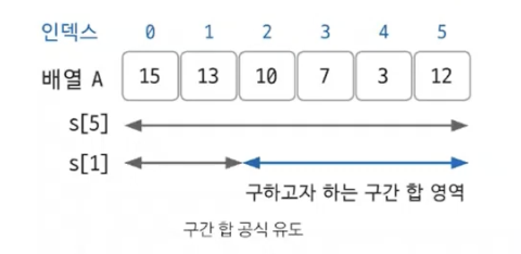 배열 A의 A[2]부터 A[5]까지의 구간 합을 합 배열을 통해 구하는 과정은 아래와 같다.