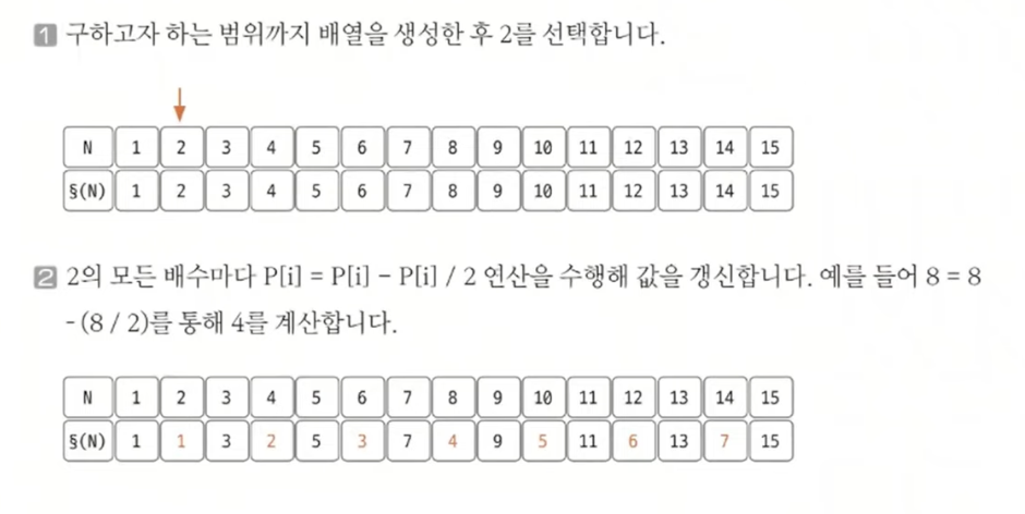 오일러 피 함수 P[n]의 정의는 1부터 n까지 범위에서 n과 서로소인 자연수의 개수를 뜻한다. 오일러 피의 개념을 알아야 관련 문제가 출제됐을 때 문제에 접근이 가능하기 때문에 간단히 집고 넘어가는게 좋다.