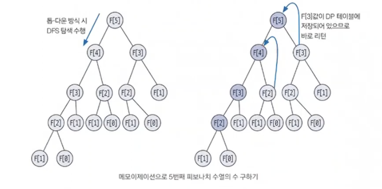 메모이제이션은 부분 문제를 풀었을 때 이 문제를 DP 테이블에 저장해 놓고 다음에 같은 문제가 나왔을 때 재계산하지 않고 DP 테이블의 값을 이용하는 것을 말한다.