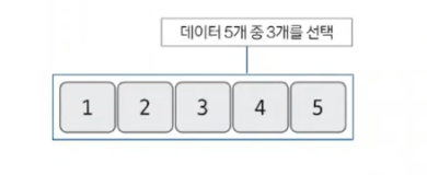 조합은 n개의 숫자에서 r개를 뽑는 경우의 수를 뜻한다. 조합과 비교되는 순열은 n개의 숫자 중 r개를 뽑는 순서를 고려해 나열한 경우의 수를 이야기 한다. 즉, 조합에서는 데이터 1, 2, 3과 3, 2, 1을 같은 경우로 판단하고, 순열은 다른 경우로 판단한다.