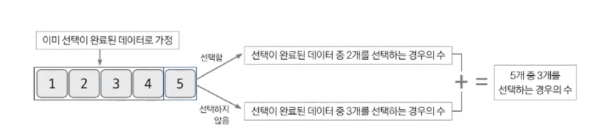 마지막 번호를 뽑지 않는다고 가정했을 때, 5개 중에 3개를 뽑는 경우의 수는 4개에서 3개를 뽑는 경우의 수와 같다. 마지막 번호를 뽑는 다면, 1개는 이미 뽑혀 있기 때문에 4개에서 2개를 뽑는 경우의 수와 같다.
