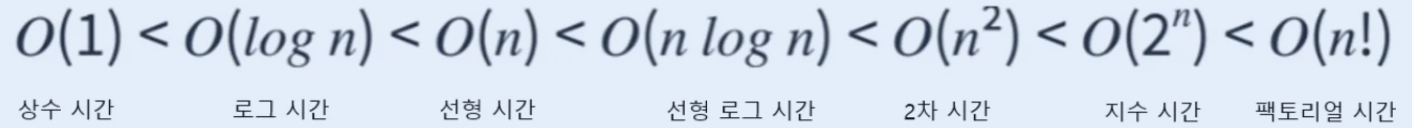 상수는 시간 복잡도 계산에서 제외되며 , 가장 많이 중첩된 반복문의 수행 횟수가 시간 복잡도의 기준이 된다.