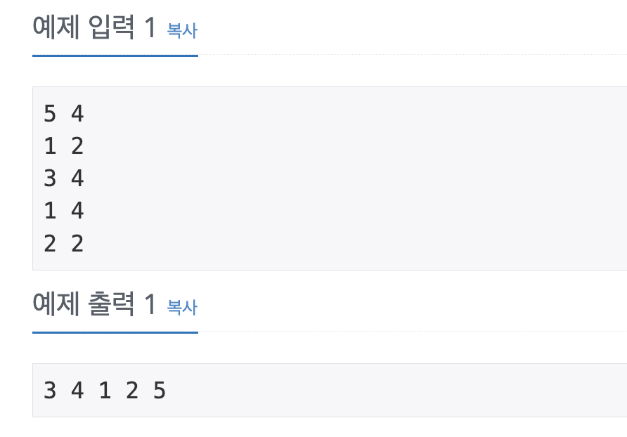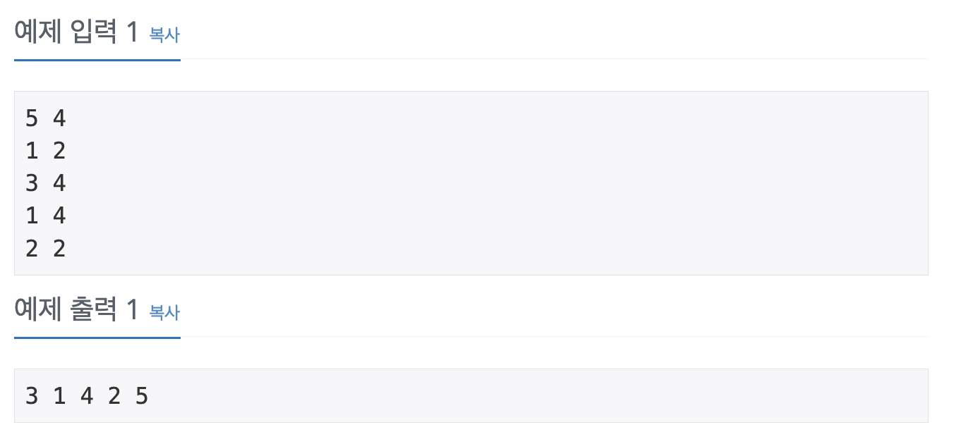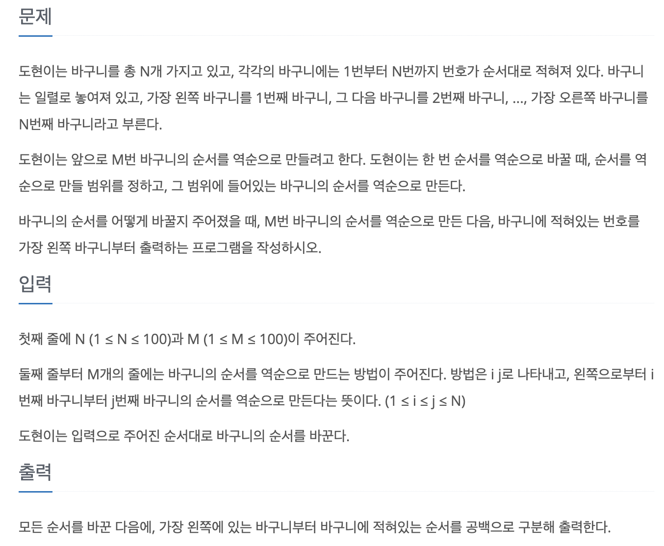 reverse() 사용reversed()는 iterator를 반환하기 때문에 list()를 사용하여 리스트로 반환해줘야 한다. n, m = mpa(int, input().split())