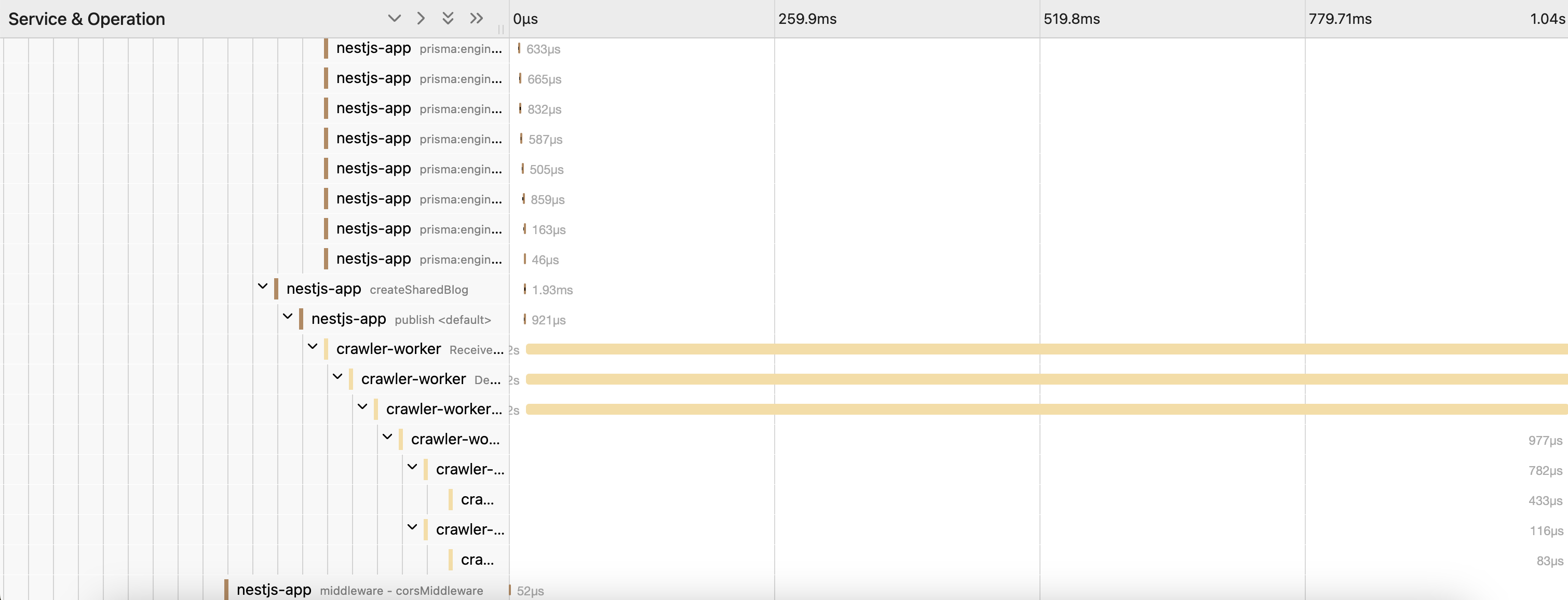 네스트는 저희가 사용하는 API 서비스들중 하나 입니다. 네스트에서 트레이싱은 비교적 쉽습니다. Opentelemtry sdk가 아주 잘 되어 있거든요. 하지만 레디스, 레빗엠큐, 데이터베이스를 트레이싱 하기 위해서 설정을 조금 해줘야 합니다.