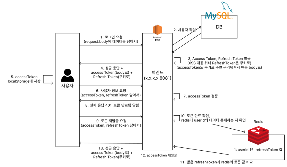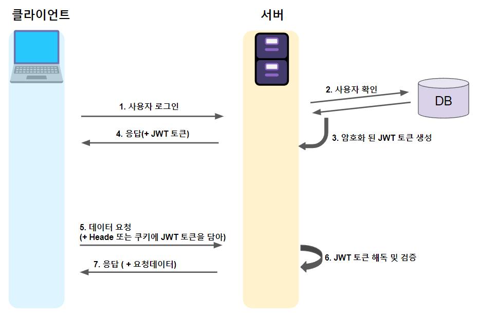 이처럼 토큰 방식을 이용하게 되면 Session Storage를 사용하지 않기에 확장에도 좋고 서버 부하도 덜하다는 장점이 있지만 토큰을 탈취 당하면 안됨.