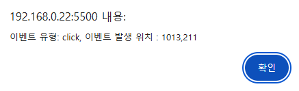 alert("이벤트 유형: " + event.type + ", 이벤트 발생 위치 : " + event.pageX + "," + event.pageY);