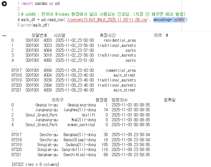 import pandas as pd walk_df = pd.read_csv('/content/S-DoT_WALK_2025.11.03-11.09.csv')