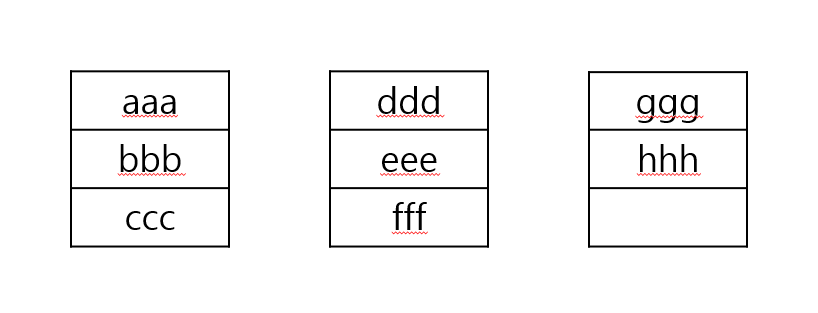 ↑ 기존 구조에서 iii, ggg 2개의 데이터가 INSERT 됐을 경우.페이지 분할이 1회 발생하였음.