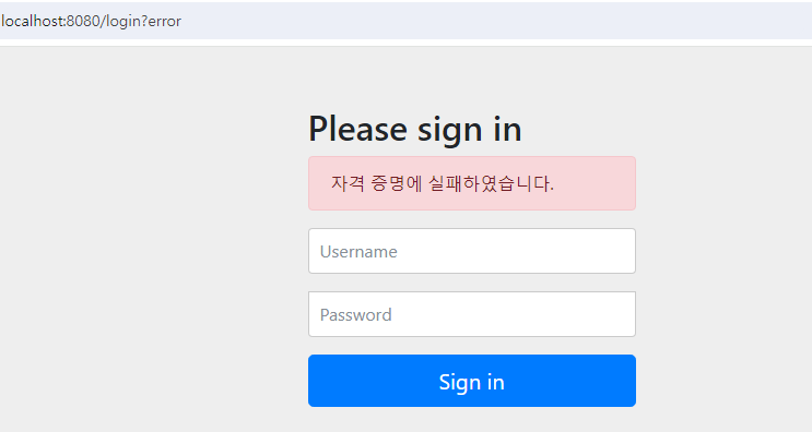 localhost:8080접속 시 자동으로 http://localhost:8080/login으로 이동됨.