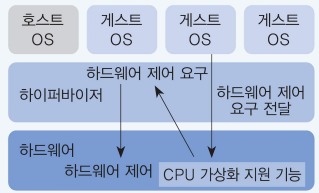 하이퍼바이저 방식은 하이퍼바이저가 H/W를 직접 제어할 수 있어서 상대적으로 오버헤드가 작음.