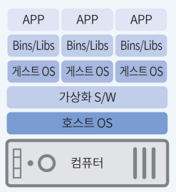 서버 가상화라는 용어는 이미 1960년대부터 다수의 IT 리소스 관리와 운영의 어려움을 보완하기 위한 목적으로 개발된 이후 널리 사용되기 시작.가상(논리적)의 기능과 구성 요소를 만들어 내기 위한 방식으로 확장되었음.호스트 가상화 방식가상화 S/W가 설치되고, 그 위에 S/W 실행을 위한 OS(호스트 OS)가 구동되는 방식.하이퍼바이저 가상화 방식하이퍼바이저가 설치되고, S/W 실행을 위한 게스트OS가 구동 되는 방식.컨테이너 방식호스트 가상화 기술은 논리적 리소스를 생성하기 위한 가장 초기에 보편화된 기술.가상화 S/W를 설치하여 가상화를 구성함.가상화 S/W에 의해 추상화된 가상 환경에 애플리케이션을 위한 OS를 작동시키는 방식.가상 환경을 가상머신(VM)이라고 함.VM을 이용한 서버 가상화를 S/W적 파티셔닝 or OS 이미지 가상화라고도 함.