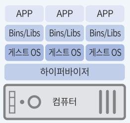 전가상화의 가장 큰 단점인 성능저하의 문제를 해결하기 위해 H/W를 부분적으로 가상화하는 방식.하이퍼 콜(hyper call)이라는 인터페이스를 통해 하이퍼바이저에 직접 제어 요청을 하기에 높은 성능을 유지할 수 있는 것이 반가상화 방식의 가장 큰 장점.하이퍼바이저에 하이퍼 콜 요청을 할 수 있도록 게스트 OS의 커널 수정이 요구되기 때문에 리눅스와 같은 오픈소스 OS 외의 OS에서 반가상화를 이용하기가 제한적인 단점이 있음.컨테이너 가상화 기술의 개념.